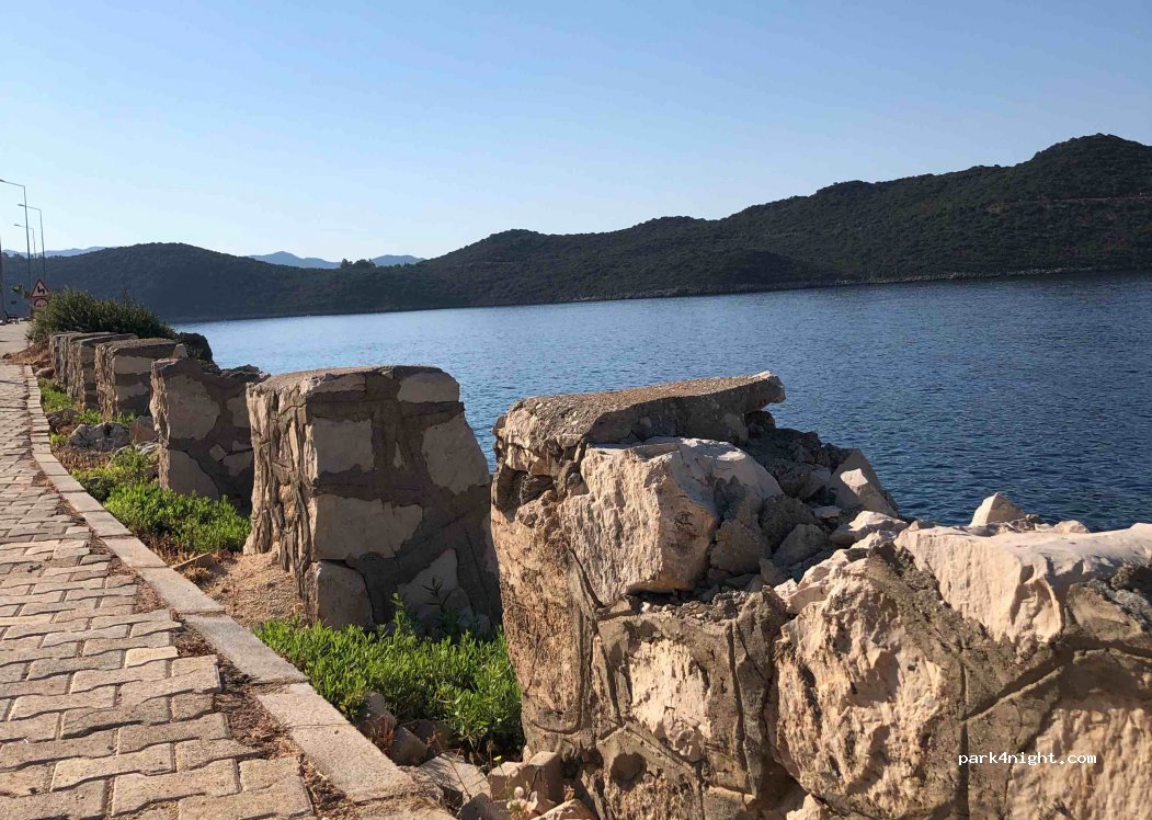 Amazing spot for motorhomes. Just up above the beach, you can park alongside the road, many cars are coming during the day so arrive early or after 5pm to find a better place. Deep blue waters you cant stop swimming. You can use the restroom and water from the Akcagerme camping site between 8AM-11PM.