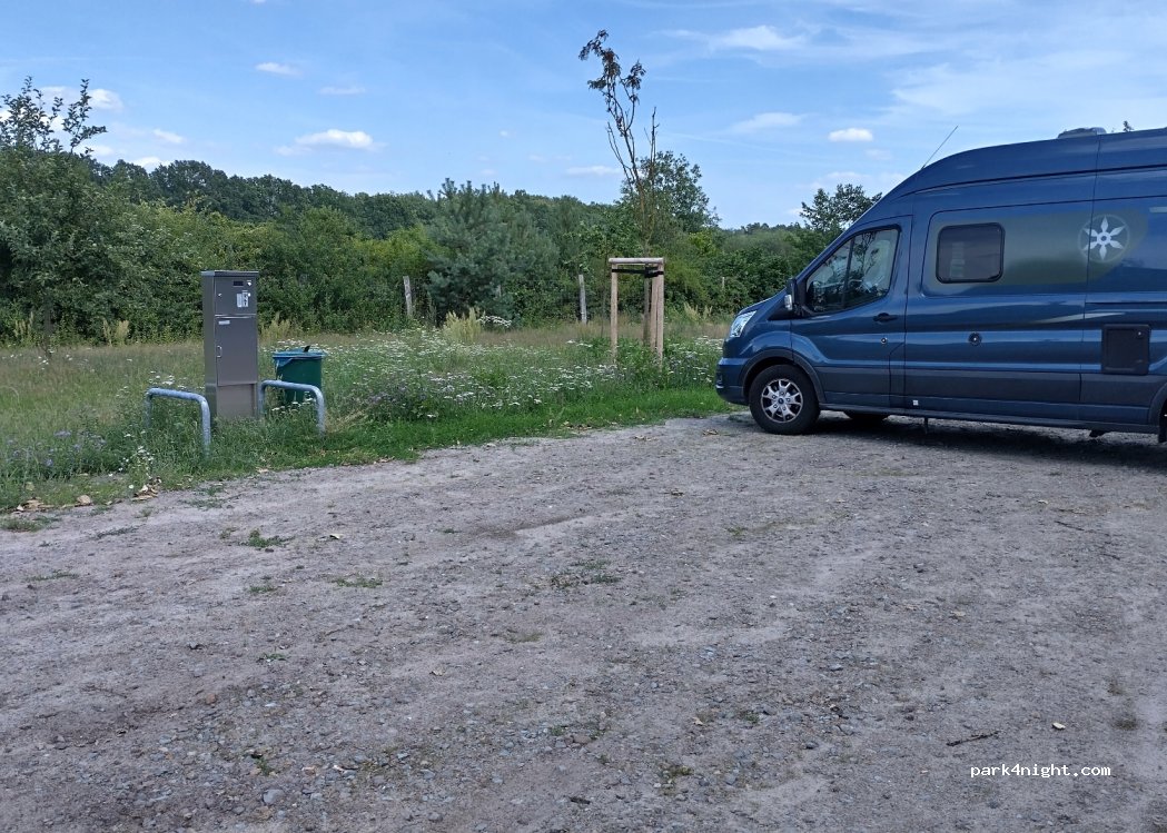 Sehr schön, bei gutem Wetter muss man damit rechnen, das am See gegrillt und gefeiert wird. Dixi-Toilette nicht mehr vorhanden, dafür Stromanschluss für vier WoMo‘s. 0,7 KW = 1 €.