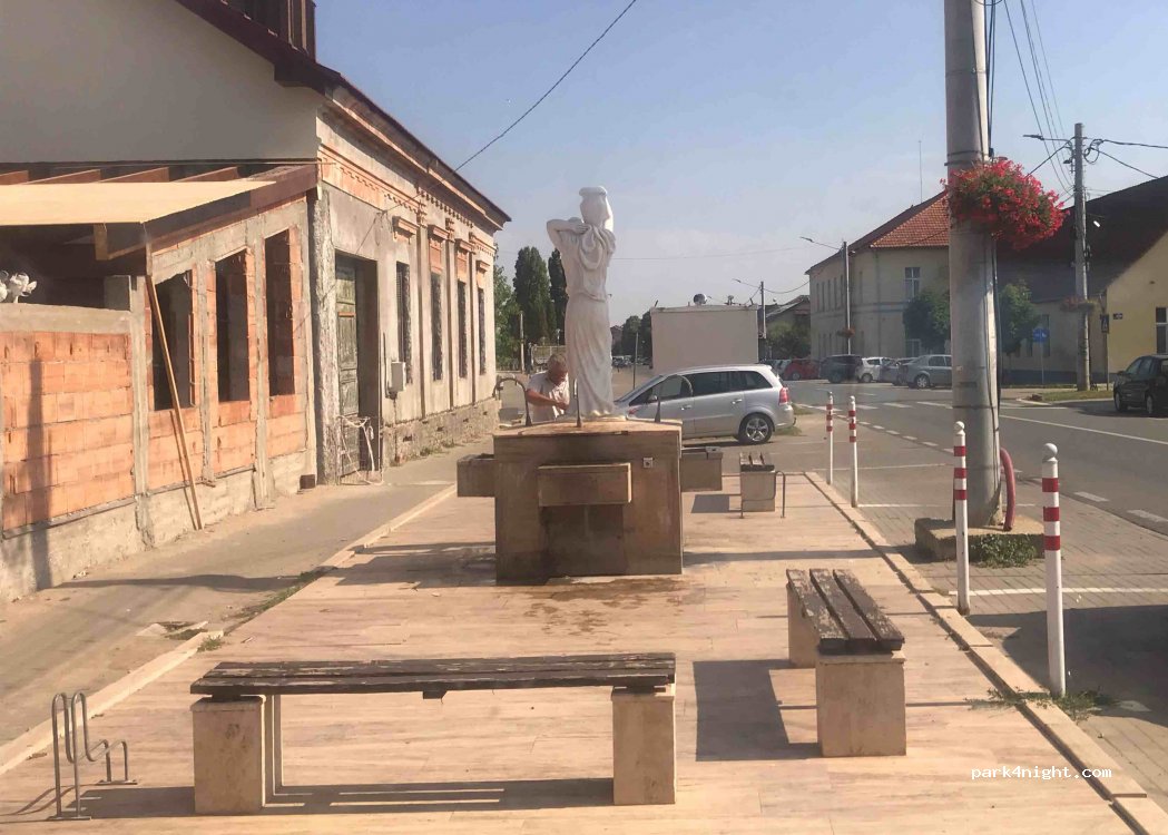 Facile pour stationner, eau potable, bon débit mais il faut rester appuyé sur le bouton pour que l’eau coule