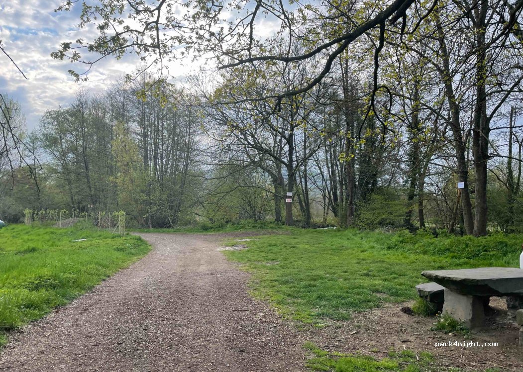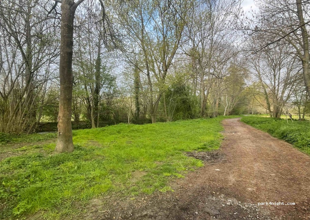 petit endroit calme au bord de la rivière, table de pique nique et poubelle. quelques joggers en fin de journée, sinon nuit très calme. nous étions deux camions, chacun son coin.