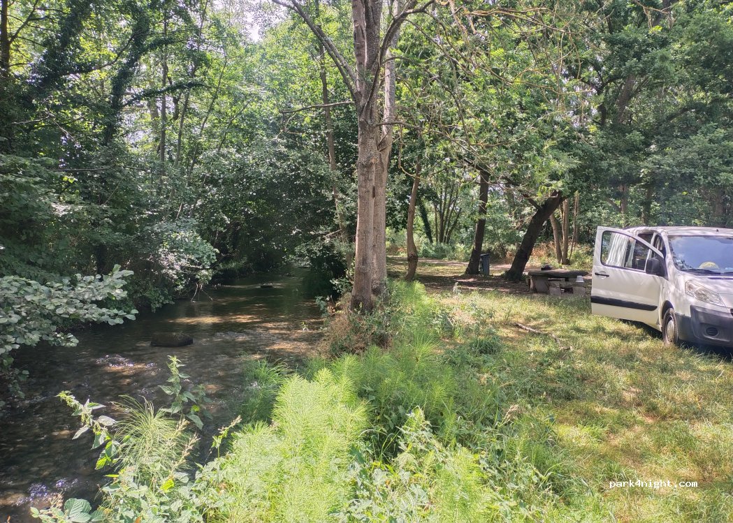 Bord de rivière. calme et joli. 1 table de pique-nique + poubelle. 2 autres vans lors de notre halte pour la nuit. Pas de moustiques.