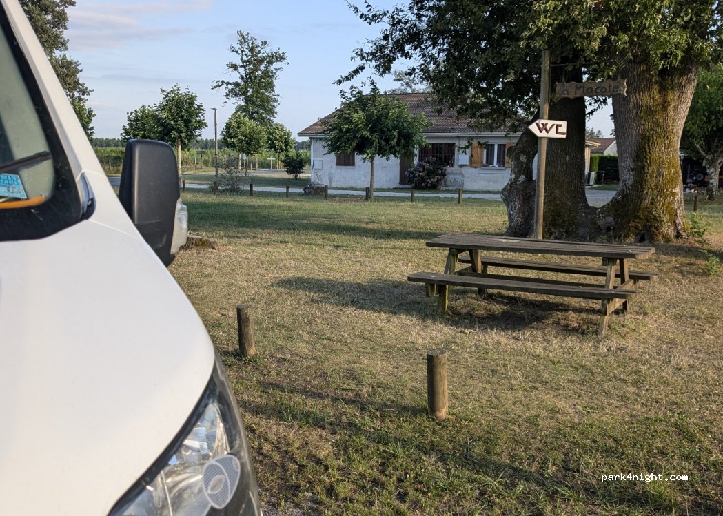 Endroit calme, toilettes et point d’eau. Table de pique nique. Attention à côté d’une école.