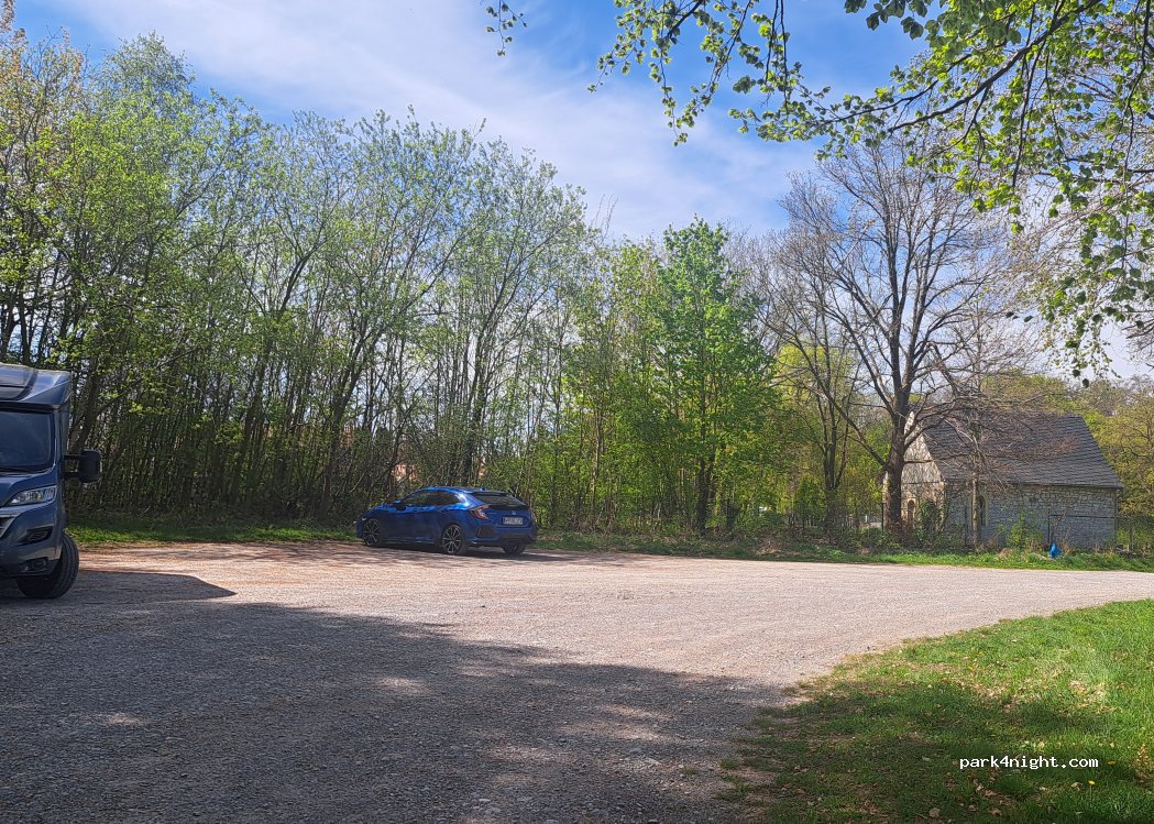 Sehr ruhiger Platz, umgeben von Wald, hinter dem Friedhof. Platz für 5-6 Wohnmobile.