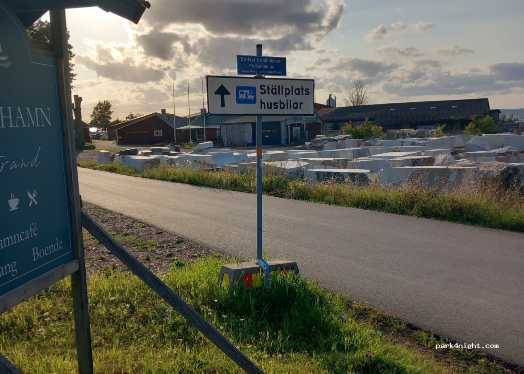 24 hour parking place. Lots of places. Free. Close to Borghamn village.