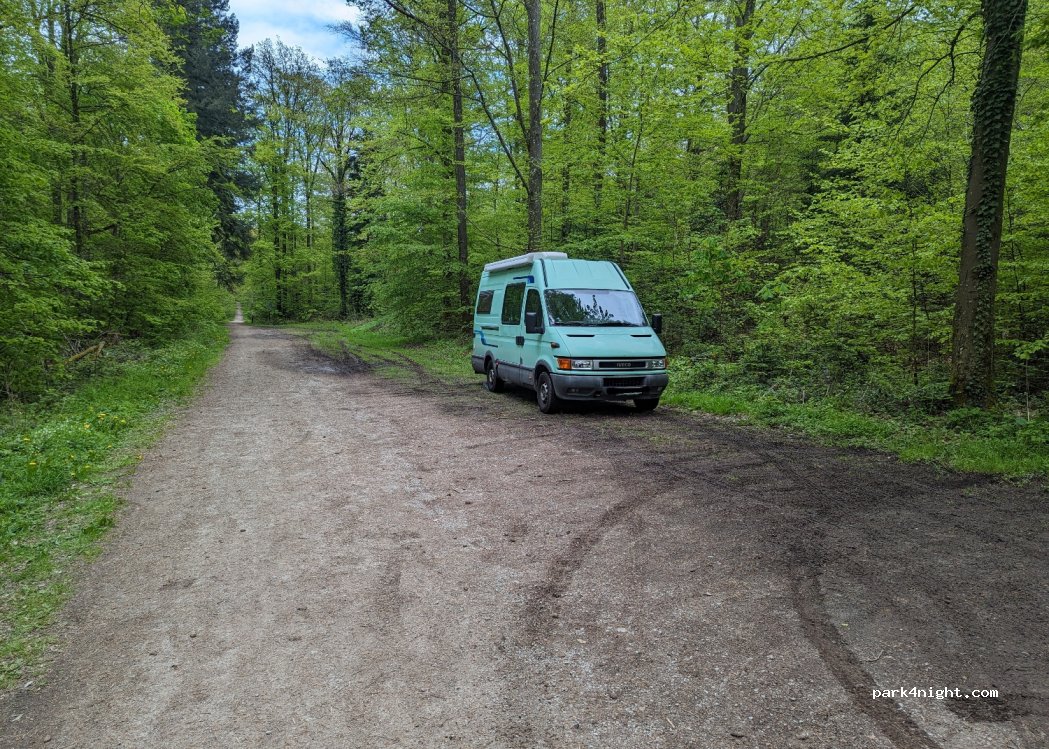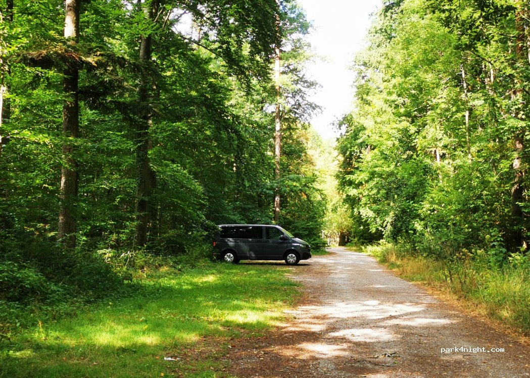 Sehr großer Wanderparkplatz, unter Wald, mit Kies, Gras, Schatten. Wenig vorbei. Tag und Nacht sehr ruhig. Kein Service, aber gutes Netz. Beraten.