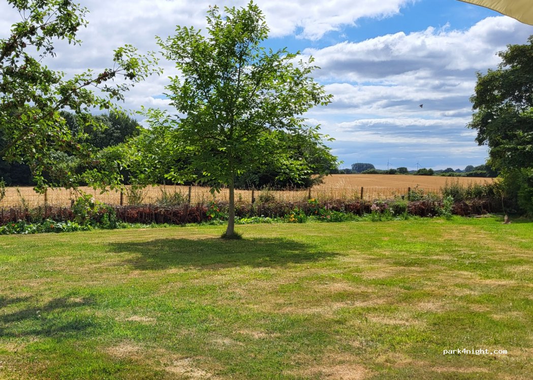 Auszeit Mohrkirch - In unserem Obstgarten mit herrlichem Weitblick Richtung Wald und Felder bieten wir auf Spendenbasis Platz für drei Fahrzeuge an.