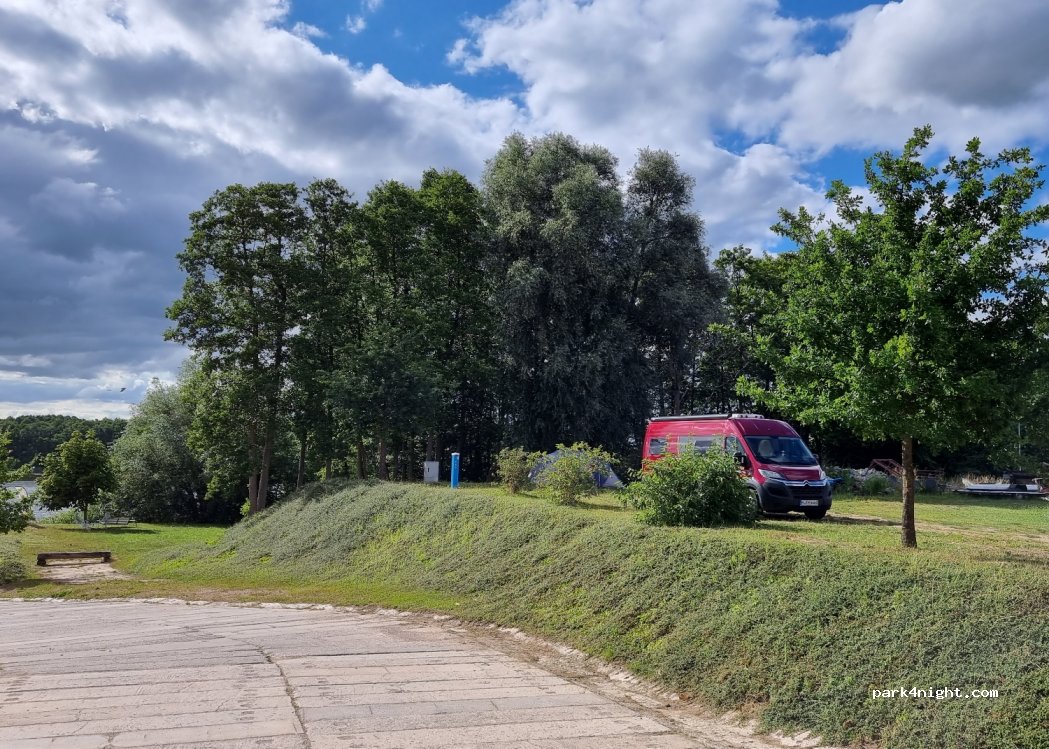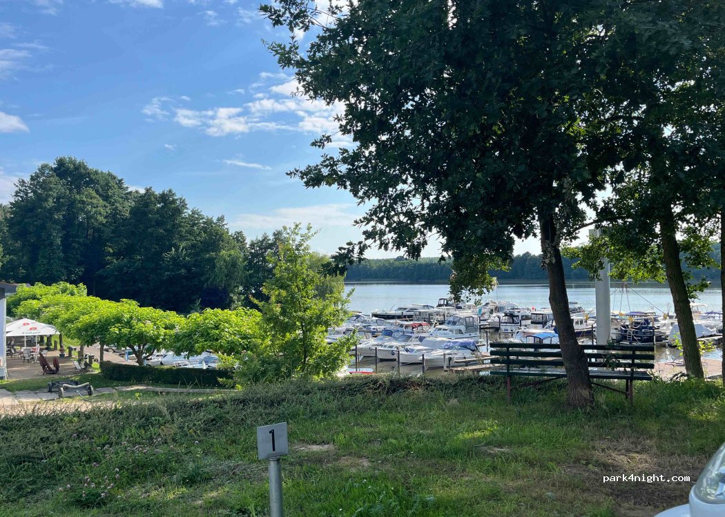 Small parking space directly at the marina, above on a green strip overlooking the lake. Electricity connection is possible, showers available. Register with the harbor master. Bread service is also offered.