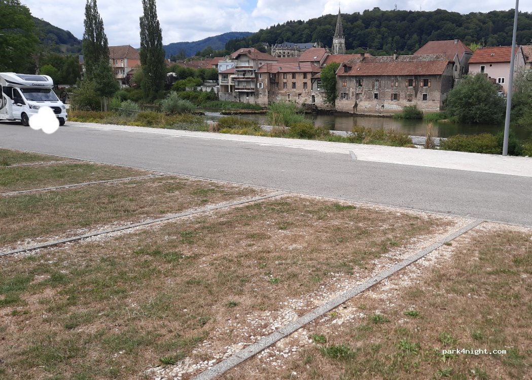 3 places spécifiques camping cars, avec une borne EDF et eau potable pour 2 emplacements. services gratuits de vidange eaux noires et grises avec robinet spécifique pour rincer cassettes toilette Environnement calme, au bord du Doubs, en retrait de la rue. Merci a la commune pour cet accueil. commerces proches a pied..