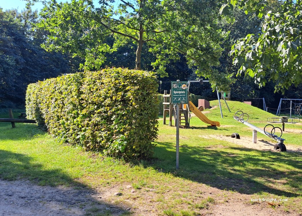 Links vom Spielplatz an der Hecke ist ein schöner Platz zum Übernachten.
