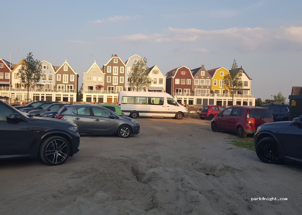 parking met uitzicht op haventje en nieuwe huizen, voor vaste slapers is dit een goede plek, voor anderen is het elk half uur het aanhoren van de kerktoren en op en af van boten met luidruchtige muziek en mensen. toiletten niet proper.