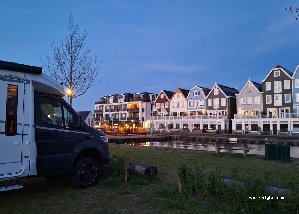 Mooie plek bij mooi weer. Parkeerplek redelijk vlak. Druk, maar wel gezellig met allemaal bootjes die komen en gaan dus heel wat te zien. Albert Heijn op loopafstand en horeca. De huisjes zien er heel gezellig uit en je krijgt een echte vakantievibe. Wij hebben overnacht van vrijdag op zaterdag. S avonds een grote hoosbui en onweer waarna op de parkeerplaats achterin veel water bleef staan.