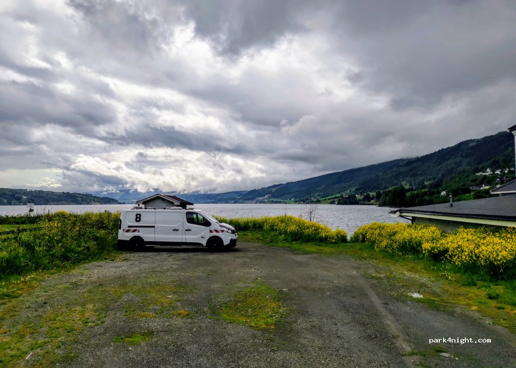 Prima plek om Lillehammer te bezoeken. Vlak naast een openbaar strandje met super schoon (invalide) toilet gebouw. De E6 op 200 m afstand is zeer luidruchtig maar met de deuren dicht geen enkel probleem. Supermarkt en benzinepomp heel dichtbij.