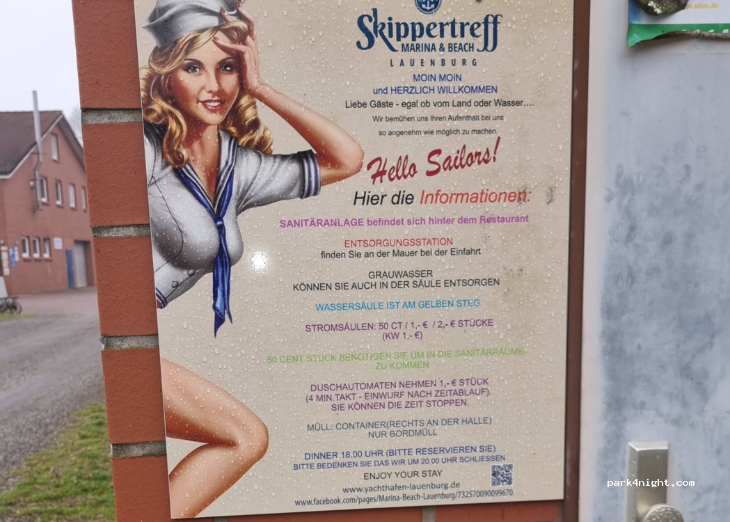 18.-€ für so enge Plätze und dann nur Sicht auf den Yachthafen und nicht auf die Elbe war uns zu viel, wir sind weiter gefahren.