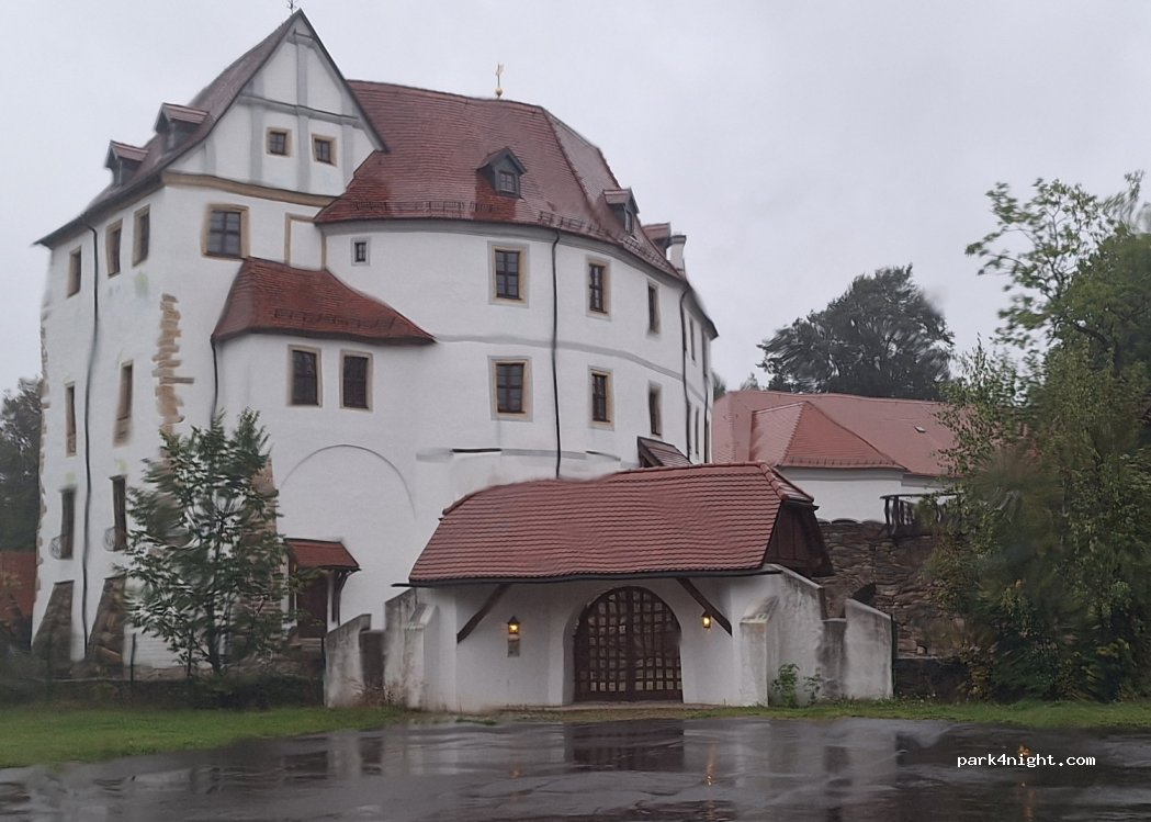 Green parking between the outdoor swimming pool and the castle Large quiet green space which belongs to the outdoor swimming pool as parking. We spent night in the parking lot. Very quiet and great view of the castle, you only hear something from the main road, depending on the wind direction. No problem here for one night.