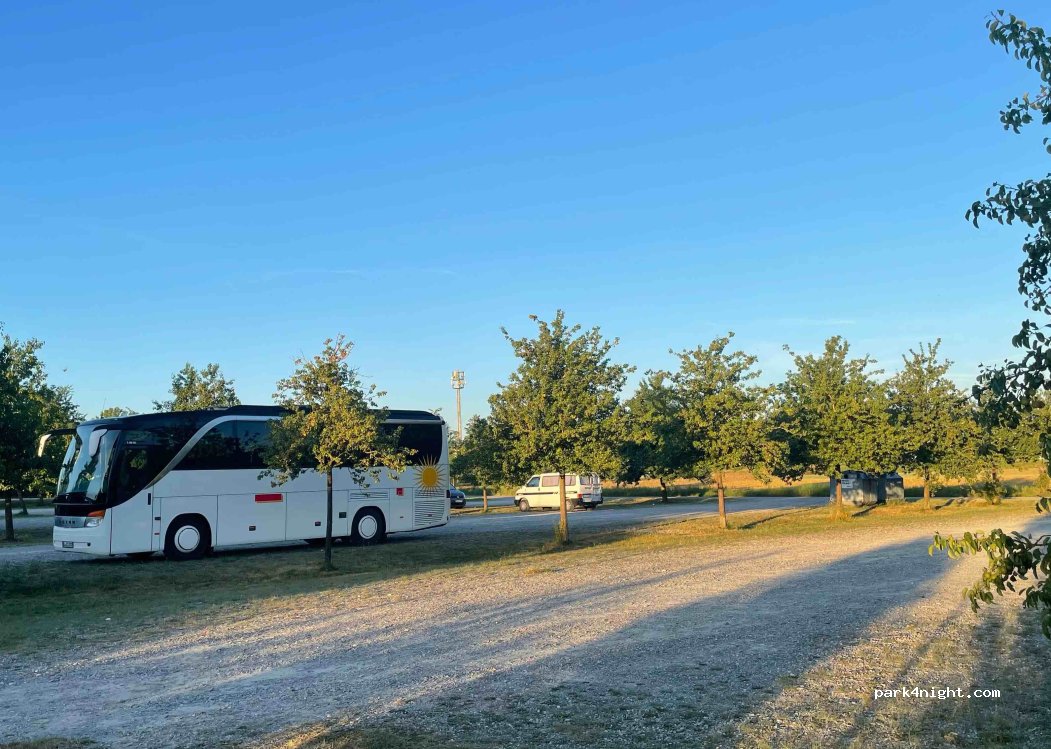 5 Sterne als Dank für diese Möglichkeit zum Übernachten.6€ haben wir sehr gern bezahlt. Sehr angenehm und total ruhig , am Tage durch den angrenzenden Freizeitpark gut Besucht gewesen was uns nicht stört. Abends standen wir alleine. Für Spaziergänge mit Hunden gut geeignet.Hunde Im Park nicht erlaubt.