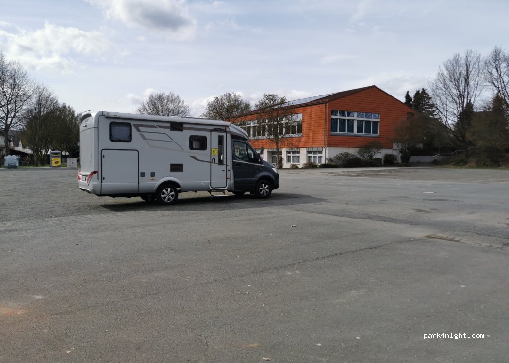 Très grand parking au milieu du village. De l’ombre ici et là sur les côtés. Un parc de jeux pas très grand mais quand même appréciable pour les enfants. Poubelles de verre, dommage qu’il n’y ai pas de poubelles noir et aussi de poubelles de tri. Nous aimerions faire le tri en camping-car en Allemagne mais ce n’est pas facile. Je recommande ce parking simple mais calme et agréable.