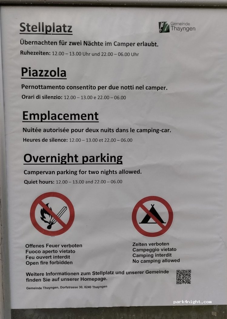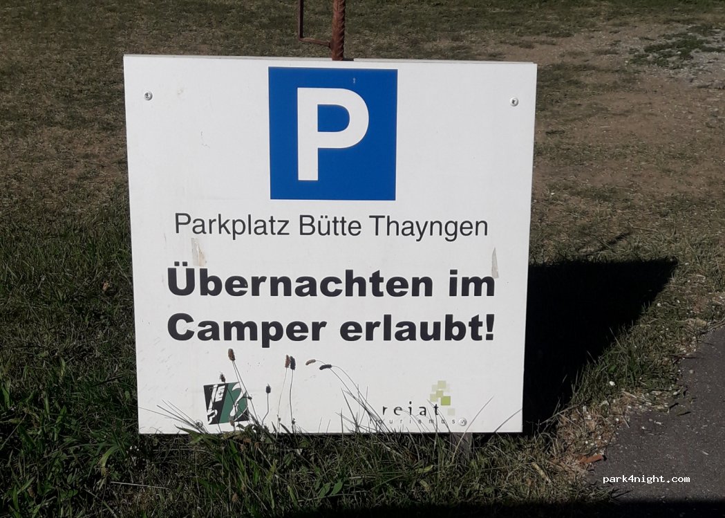 Ein grosses Dankeschön der Gemeinde Thayngen, das Sie uns Campern einen Platz zu Übernachten geben. Als wir am Abend kamen, waren die Besucher des Freibades Bütte bereits gegangen und der Platz war leer. Sehr ruhig kaum Verkehr. Sehr empfehlenswert!!!