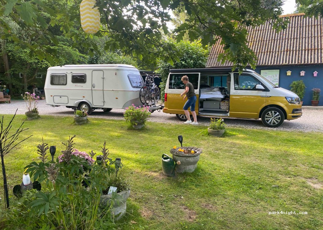 Very nice stay, even for only a night. The owners were extremely friendly and helpful to give us tips, specifically for the Fredensborg Slot that we enjoyed very much. We have arrived late, around 20h30 and they were very quick to let us check in. Everything was very nice . We have payed 255DKK for 2 adults, 2 dogs and a campervan with electricity.