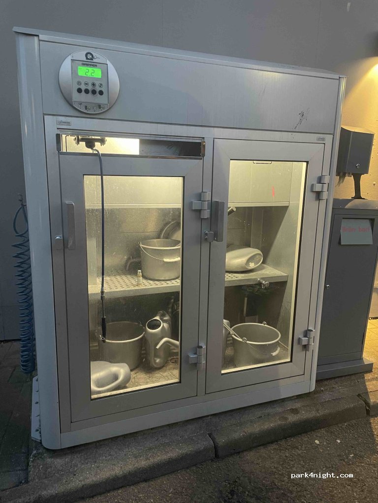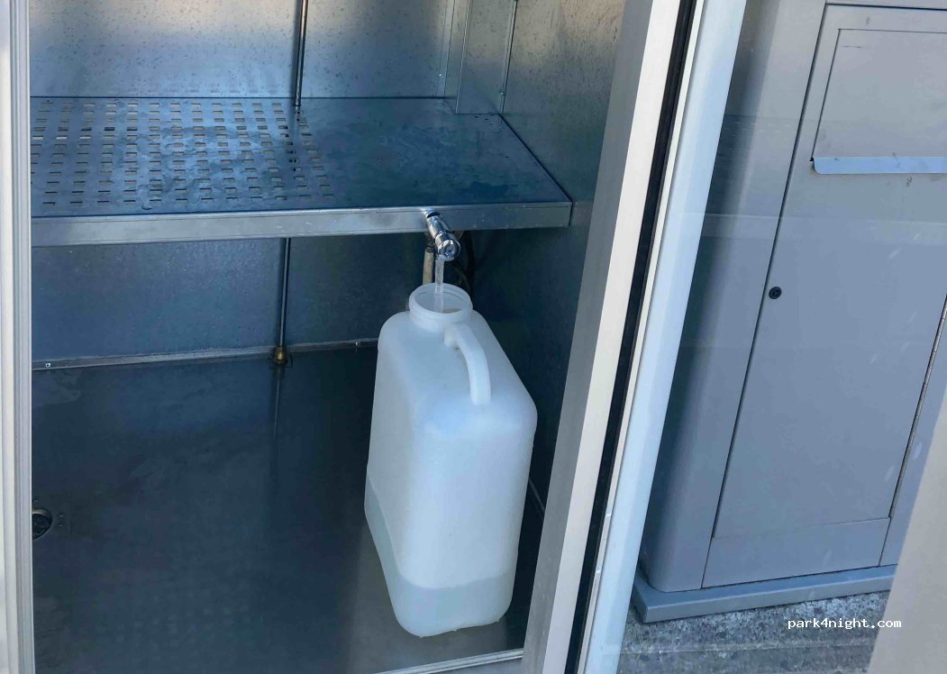 er is wel water maar je kunt er geen slang op aansluiten en dus niet je camper ermee bij vullen. Alleen een kleine tap met drukknop.
