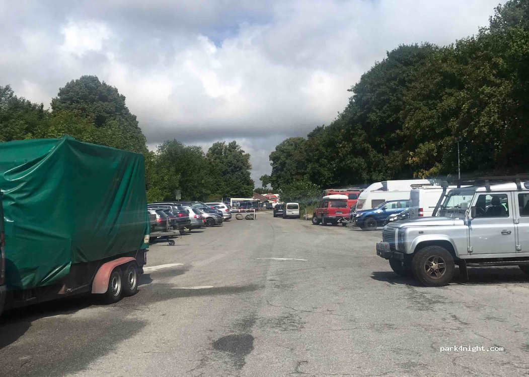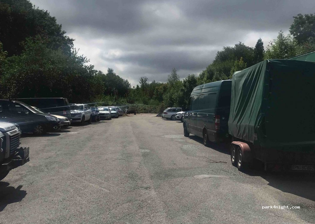 Repurposed for construction machinery & turn-around for buses, only max 4 parking spots for regular cars or tiny short campers. 6m caravan couldn’t fit or would block the access to the construction machinery