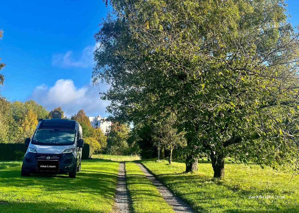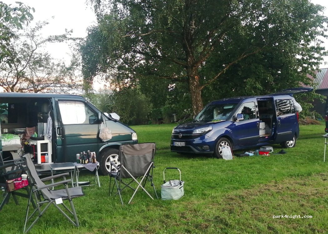 Am Ortsrand einer Kleinstadt gelegen und dennoch mitten in der Natur. Stellplatz auf der Wiese bzw. auf einem privaten Schotterweg weil die Wiese noch zu nass war. Abendessen und Frühstück mit Blick auf eine teilweise gemähte Wiese und die Baumschule nebenan. Schön noch ein paar Stunden am Lagerfeuer verbracht, um dann am nächsten Morgen weiter zu reisen. Wir kommen bestimmt mal wieder