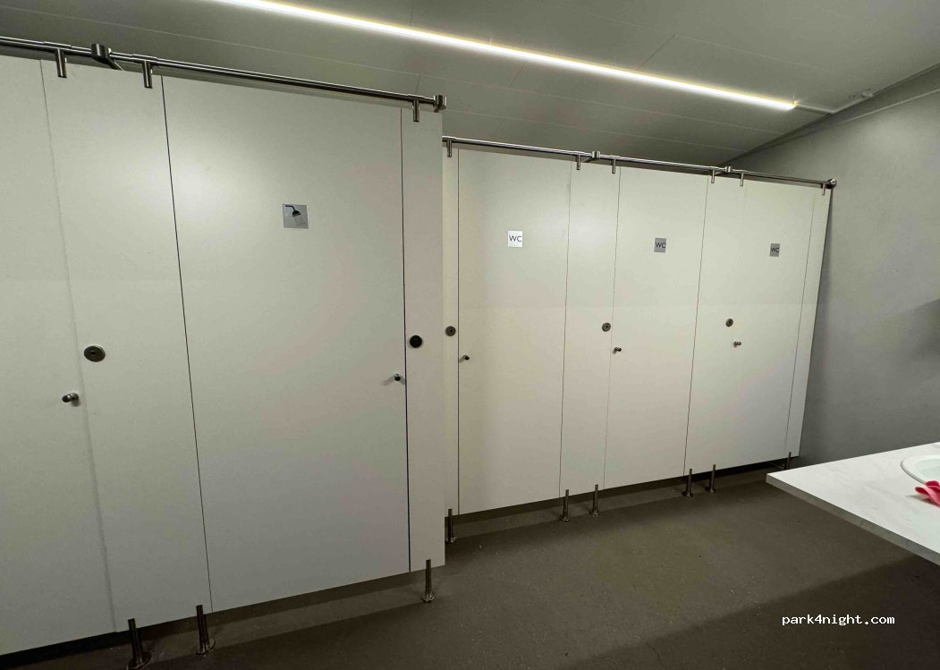 Beautiful, quiet campsite with a pleasant living room and a very well-equipped kitchen. Waste separation is thorough. The showers are hot and clean, as are the toilets. Information: There is a shared washroom and toilet area, no gender-segregated ones. Showers and toilets are individually lockable. A warm laundry room with clotheslines is available. Drinking water is available; no dumping is permitted. Plenty of seating areas inside and outside.