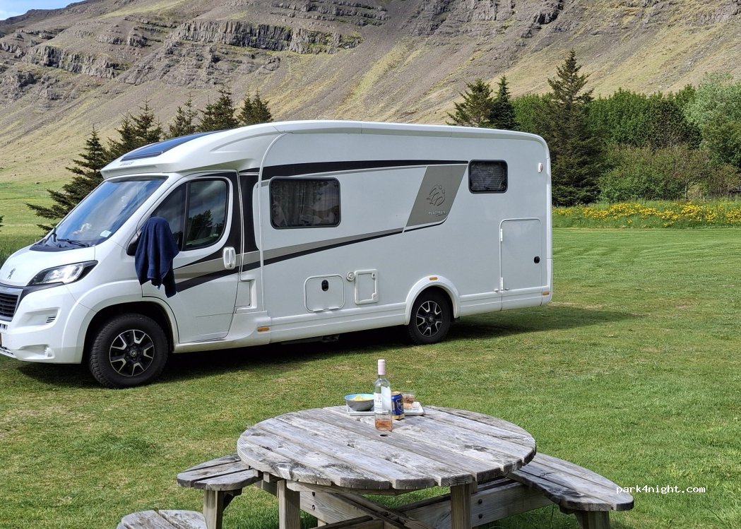 Nette vlakke camping met keurig sanitair. 3 toiletten en 2 douches. Keuken aan de kleine kant, maar daarentegen is de recreatieruimte zeer ruim. Vriendelijke beheerster. ISK 2.500 pp ISK 1.500 electra.