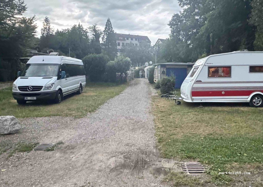 Campsite for mostly residential vans. A few pitches for camper vans on gravel, right next to the Rhine. Restaurant on site, laundry and showers (extra charge). Very clean and friendly plus reasonably priced for the area. Lovely walks by the river so great for dog owners. Highly recommend this!