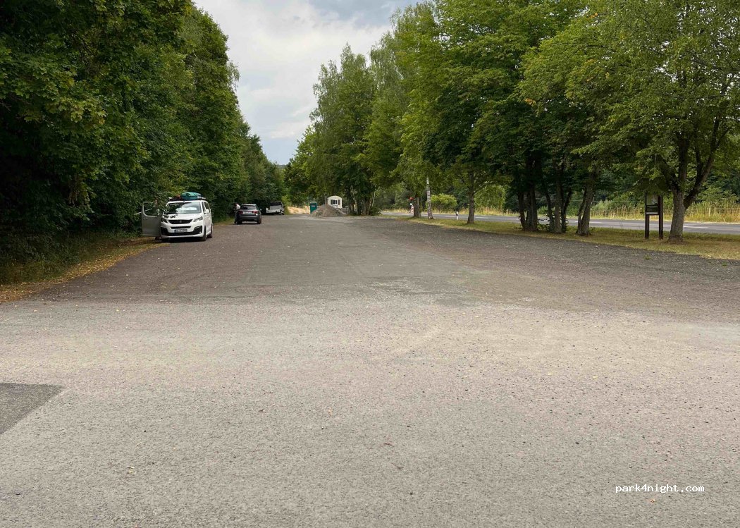 Ruhig gelegener Parkplatz an einem Badesee. Der Platz liegt an einer Straße ohne viel Verkehr. Das anliegende Cafe hat angeblich nur am Sonntag geöffnet.