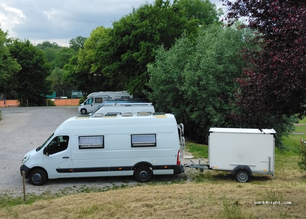 Wir waren auf der Durchreise und haben eine Nacht hier verbracht. Ein schöner Platz in einer Sportanlage. Da wir mit 7m plus Anhänger unterwegs sind, waren wir froh, dass hierfür genügend Platz ist. Müllentsorgung ist gut angedacht, aber leider übervoll. Bezahlt haben wir 9,20 € (8 € plus Servicegebühr).