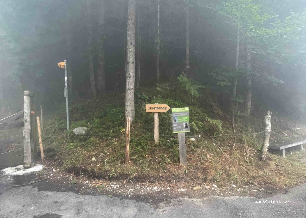 Parking de départ pour les randonneurs du Mont Pilatus. Parking très calme mais sans service, ni eau, ni toilette, ni électricité. Merci de respecter le lieu afin que les gens du villages continuent d’accepter les campeurs.