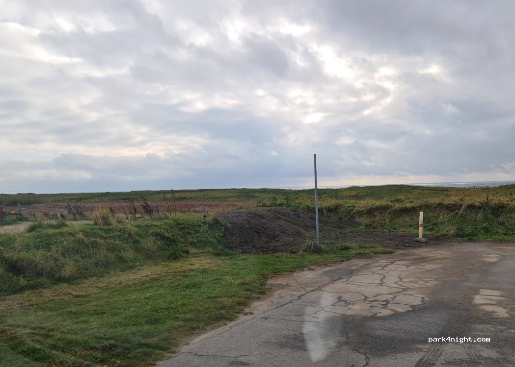 It’s not anymore allowed to park behind the dike, because the area is a Nature conservation area. Its only alowed to park on the parking area in front of the grillbar. No Camping is allowed