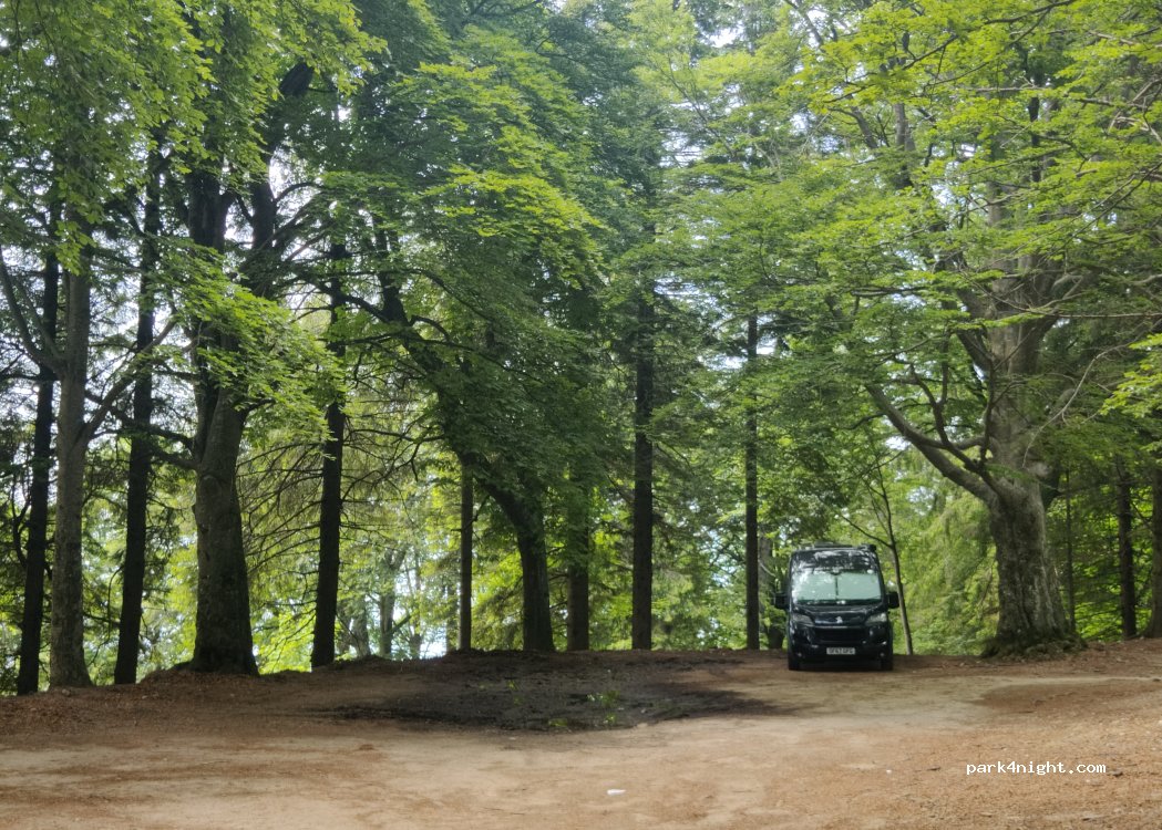 Grand parking sous les arbres en haut du Mottarone, destiné à accéder à la luge d'été (montée de 5 minutes à pied) et aux balades alentours. Plusieurs places permettent d'être à plat. Surplombe un restaurant un peu classe (qui a son propre parking privé en contrebas). Assez rempli la journée mais se vide en fin de journée, à part quelques clients du resto. Au fond du parking nous étions bien tranquilles. Passage du patron du resto et de la protection civile qui nous ont salué, on ne gênait pas visiblement!