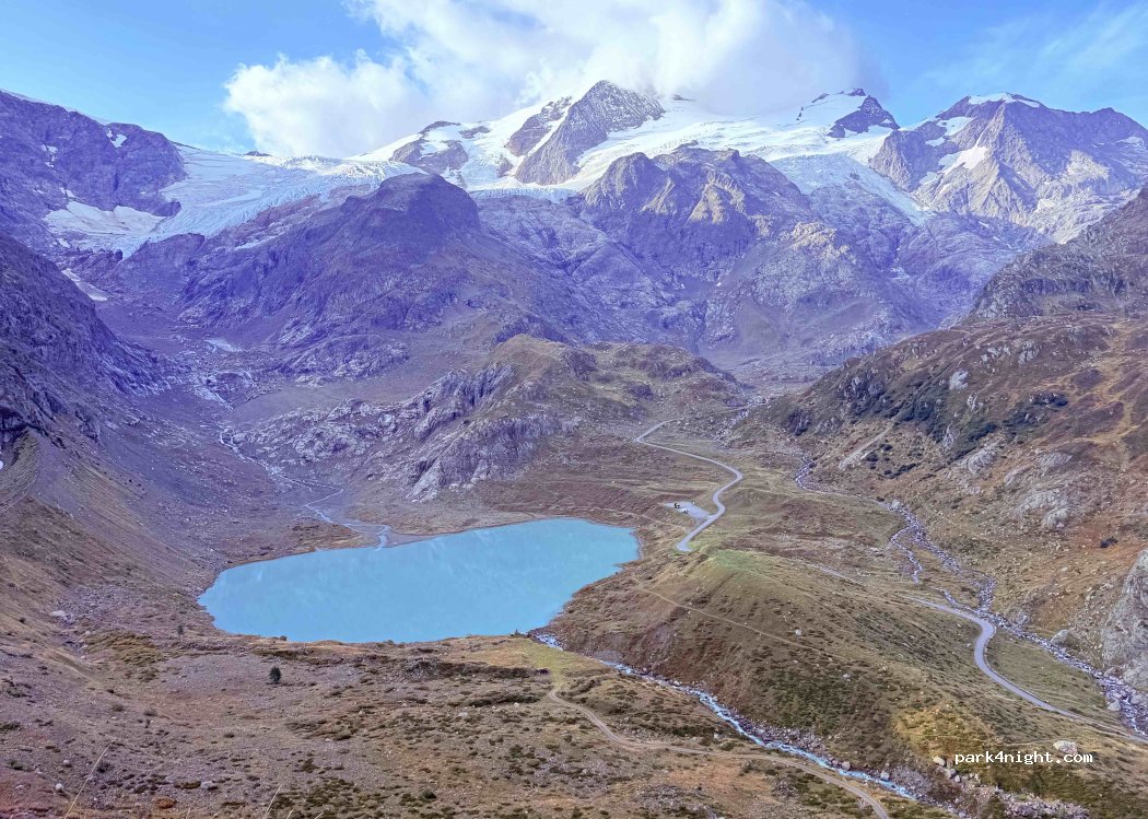 Super nice parking lot with a view of the Steingletscher and Steinsee. About 5 minutes by car from Susten Passhöhe. The bottom is quite sloping but the view is amazing. When the Susten Pass is closed in winter, the place is not accessible.
