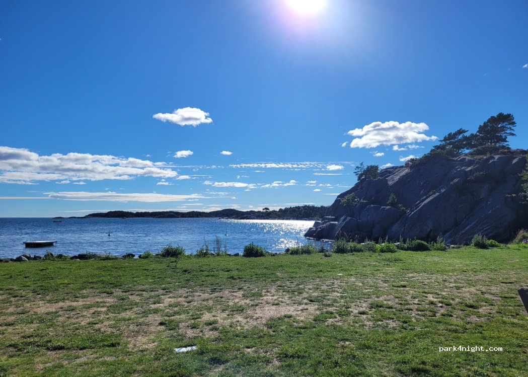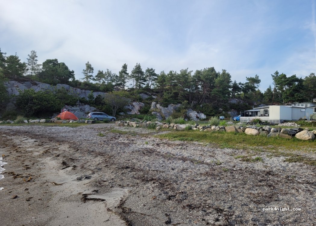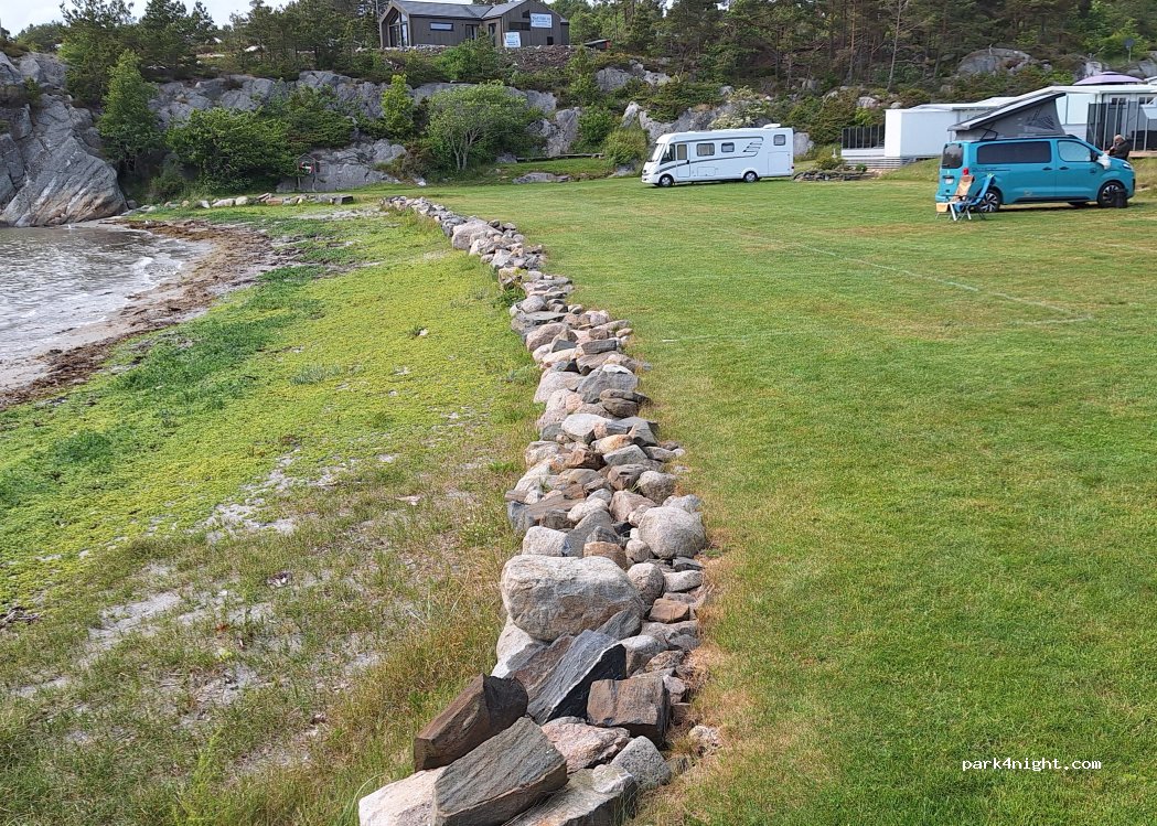 Nice pitch at the Breivik campsite, you can choose between a quiet forest or right on the beach. Otherwise, there are many permanent campers and mobile homes for rent here. The toilets and showers are great - brand new and very clean. There is a small kiosk with a reception, but we are already in the low season at the beginning of August and there is only someone there to collect cash for a short time. There is a barrier at the entrance, you have to ring the bell and if something is free you will be given the number of the place.