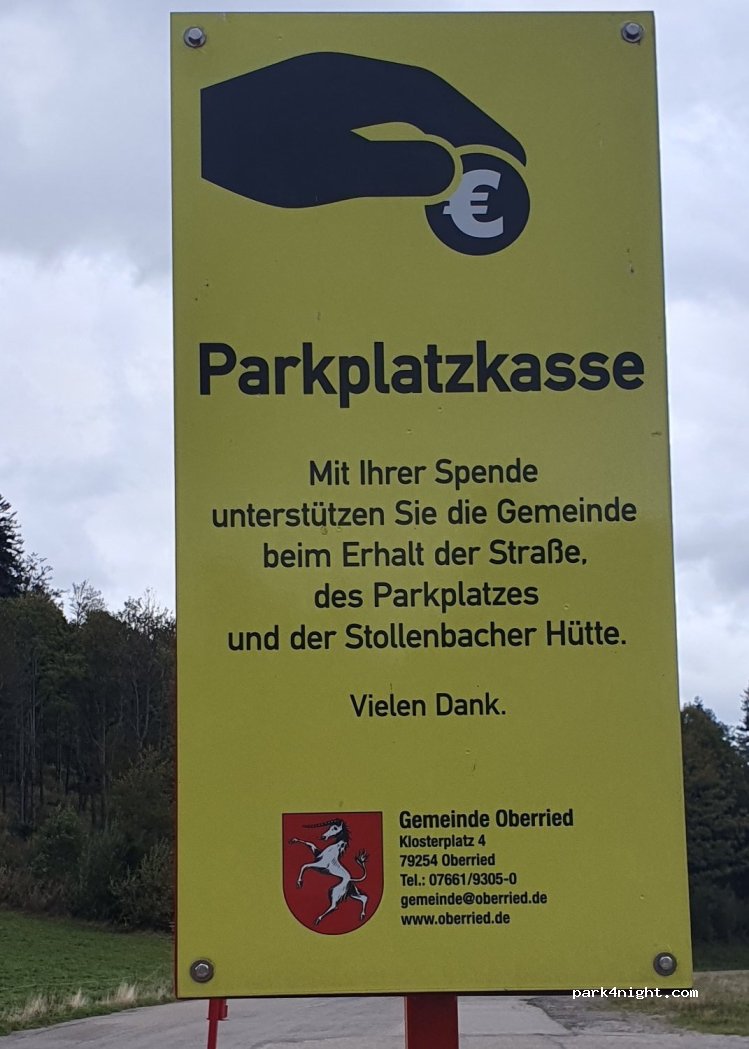 Parking de randonnée au Stollenbacherhof. Le stationnement de nuit y est toléré. Si vous prévenez la cabane, la propriétaire laisse même les toilettes ouvertes la nuit. Très calme et très sombre (excellent pour observer les Perséides !). Une vache qui tinte en été.