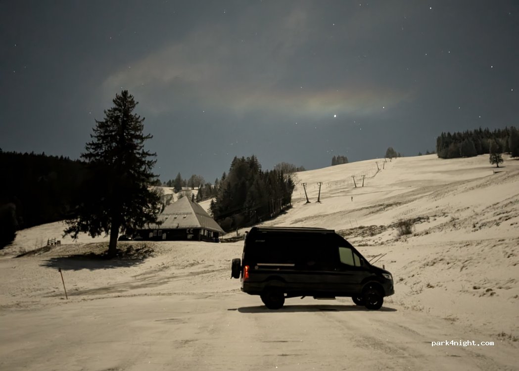 Was für ein wunderschöner Platz zwischen drei Skiliften. :) Ich habe super geschlafen, es war sehr ruhig und es gibt viel Platz. Man kann ab dem Parkplatz ganz viele unterschiedliche Wanderungen bis zum Feldberg machen. Leider hatte die Hütte geschlossen als ich da war, aber die ist natürlich ein zusätzlicher Pluspunkt.