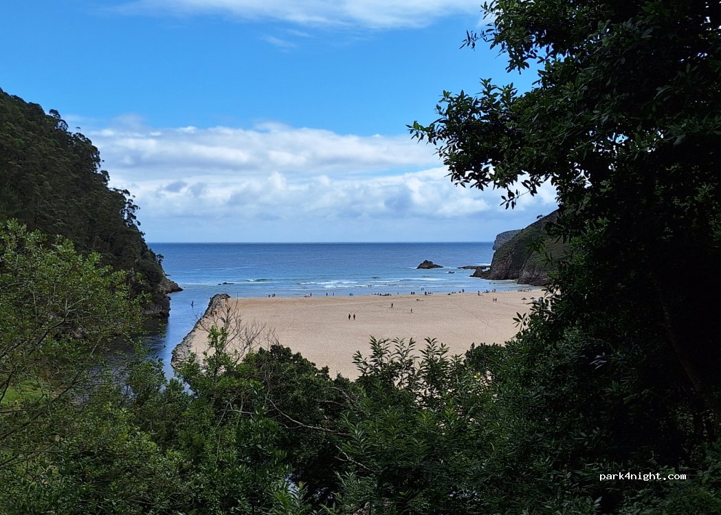 Hemos estado una noche y muy tranquilos. La carretera apenas se oye pasadas las 22h. Dormimos unas 7 autos y campers. Bajada a la playa por un sendero a la izquierda. Ir con marea baja. También subiendo se pueden ver los bufones de Santiuste 10min andando.