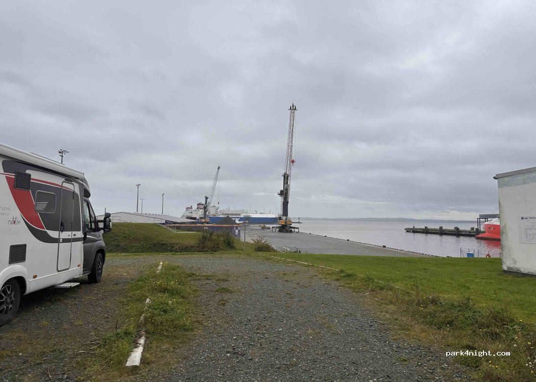 Ein guter Stellplatz wenn man am nächsten Morgen zur Fähre möchte. Der Platz ist gerade und sauber. Man steht aber direkt neben dem Hafen in einem Gewerbegebiet. Dennoch ist es nachts halbwegs ruhig. Nichts besonderes, aber zweckmäßig. Keine Ver- und Entsorgung.