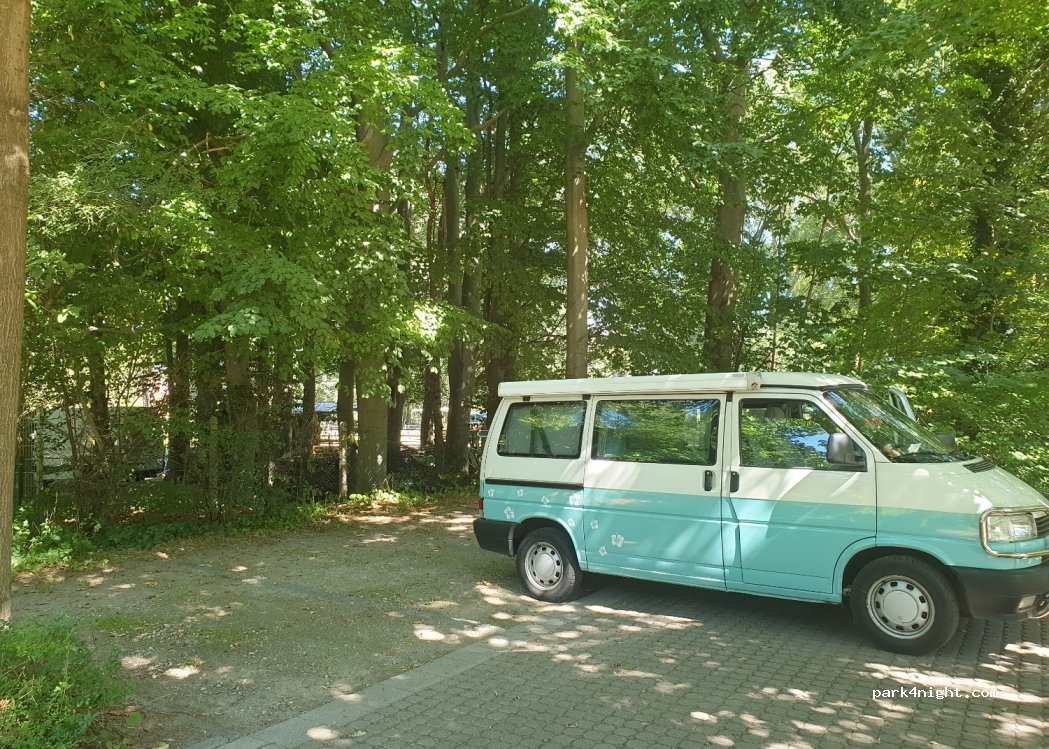 Parking (gravel lawn stones) "at the horse tram" little frequented, lots of shade, quiet. Opposite the cement museum, among other things, about 150m from the Kreidesee. No trash can. no toilet