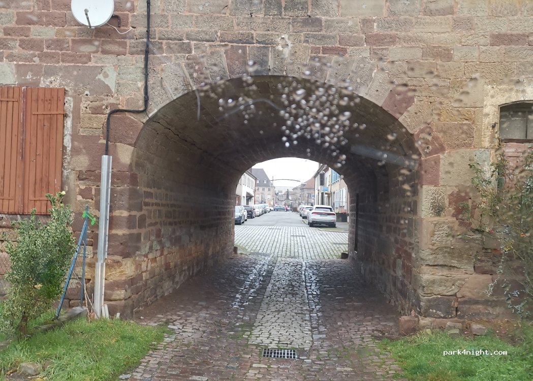 Zentral gelegen hinter einer ehemaligen Kaserne. Die Zufahrt durch einen Torbogen wirkt schon etwas seltsam... Nicht wirklich schön aber ziemlich ruhig, besonders nachts. Gut zum Übernachten. Vielen Dank an Phalsbourg!