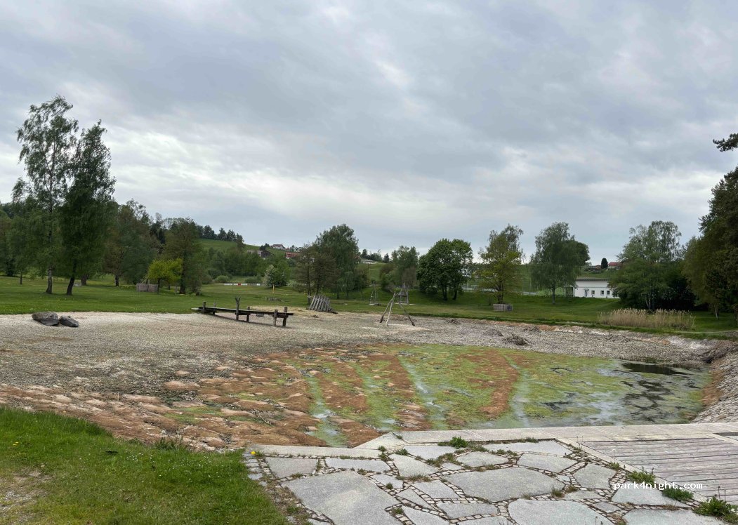 Der Platz/Wiese sieht an und für sich schon gut aus, aber leider hat der See kein Wasser mehr. Vielleicht einen falschen Zeitpunkt für den Ort gefunden.