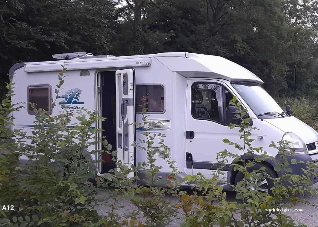 Lieu super. Avec beaucoup de place pour se garer, autorisé, à plat, accès à un lac (ancienne gravière aménagée) pour se baigner et herbe pour pic nic. très tranquille et familial. Des baigneurs en journée mais pas du tout gênant.