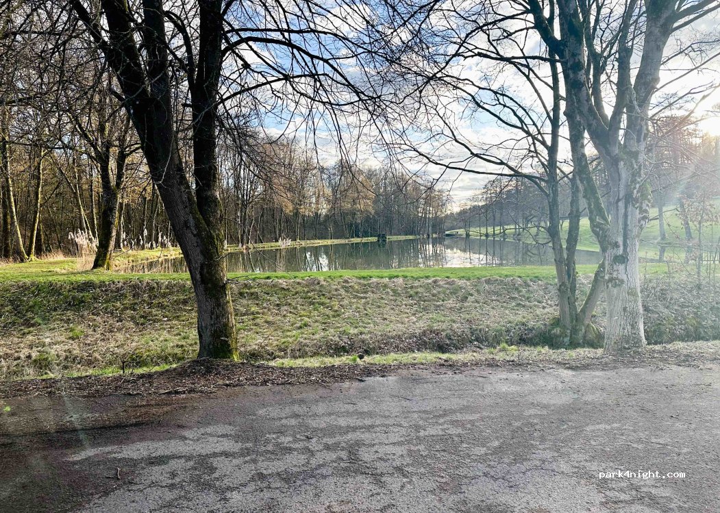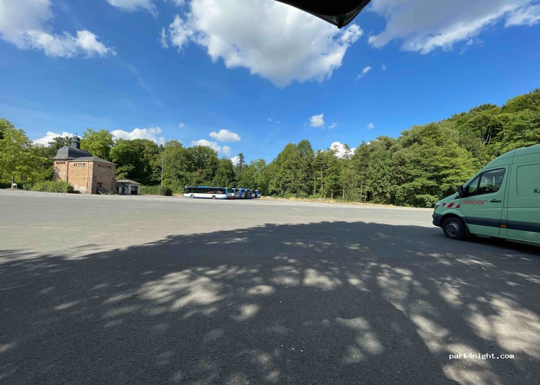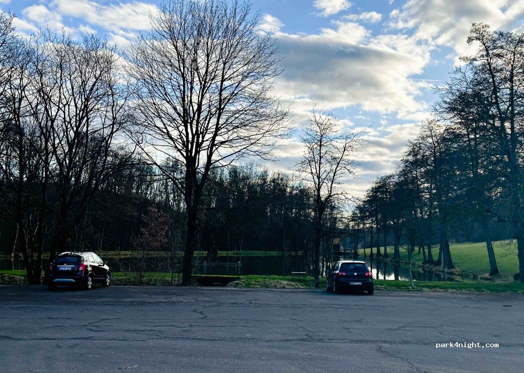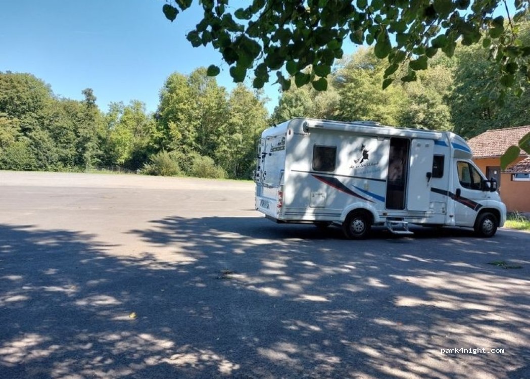 Grand parking sur la route principale, directement sur place, calme en journée le dimanche. Je n'ai pas passé la nuit moi-même, mais il y avait quelques mobil-homes sur place. Les toilettes étaient verrouillées. Une rangée d'arbres offre de l'ombre pendant la journée, le reste est au soleil. De nombreuses forêts vous invitent à de longues promenades.