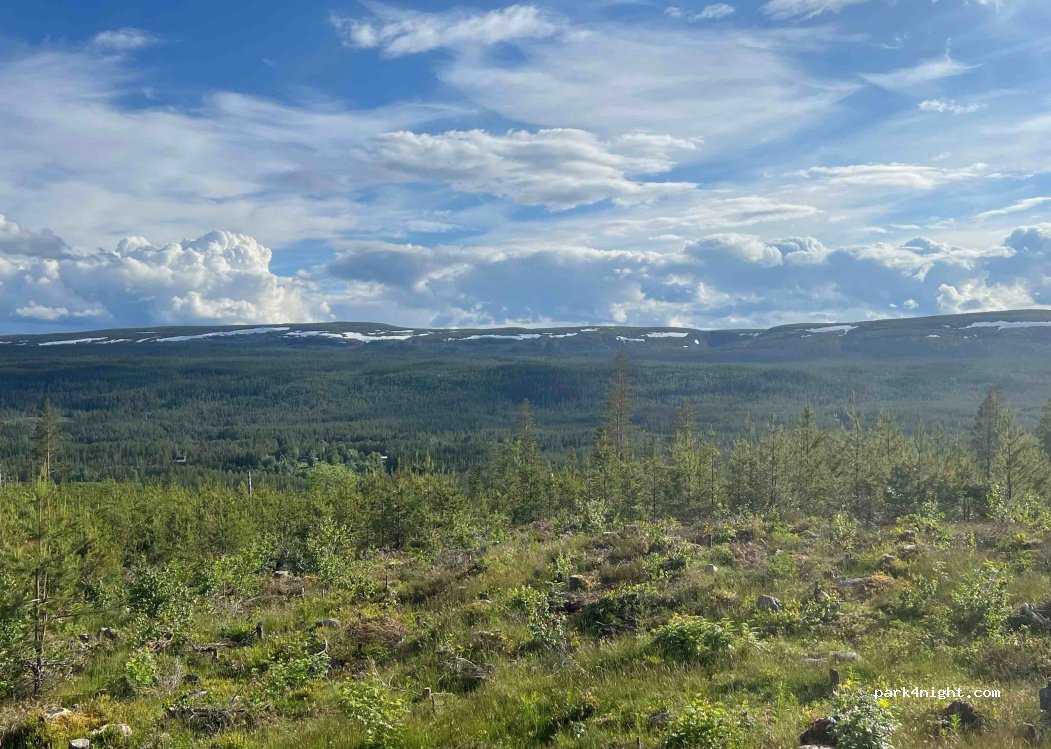 Beautiful spot overlooking Fulufjallet National park. Views of the waterfall in the far distance. Fire pit and wooden dining shelter sponsored by local clubs. Gravel road access. Stayed for a peaceful night in a small camper.