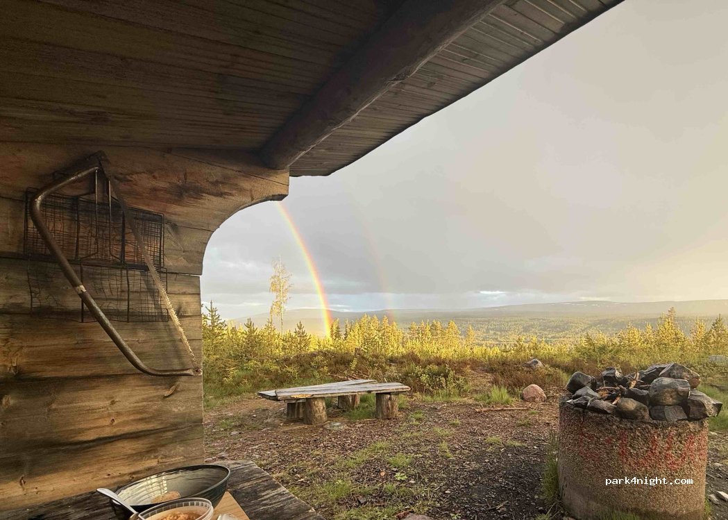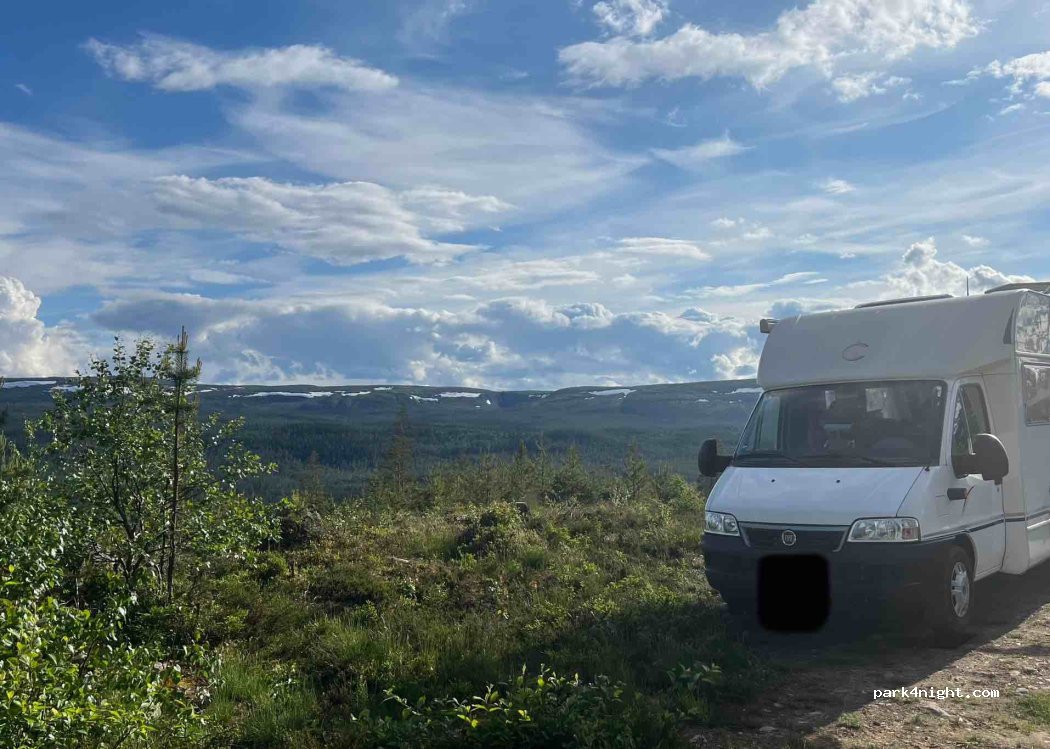 Bel endroit surplombant le parc national de Fulufjallet. Vues de la cascade au loin. Foyer et abri-repas en bois parrainés par les clubs locaux. Accès chemin gravillonné. J'ai passé une nuit paisible dans un petit camping-car.