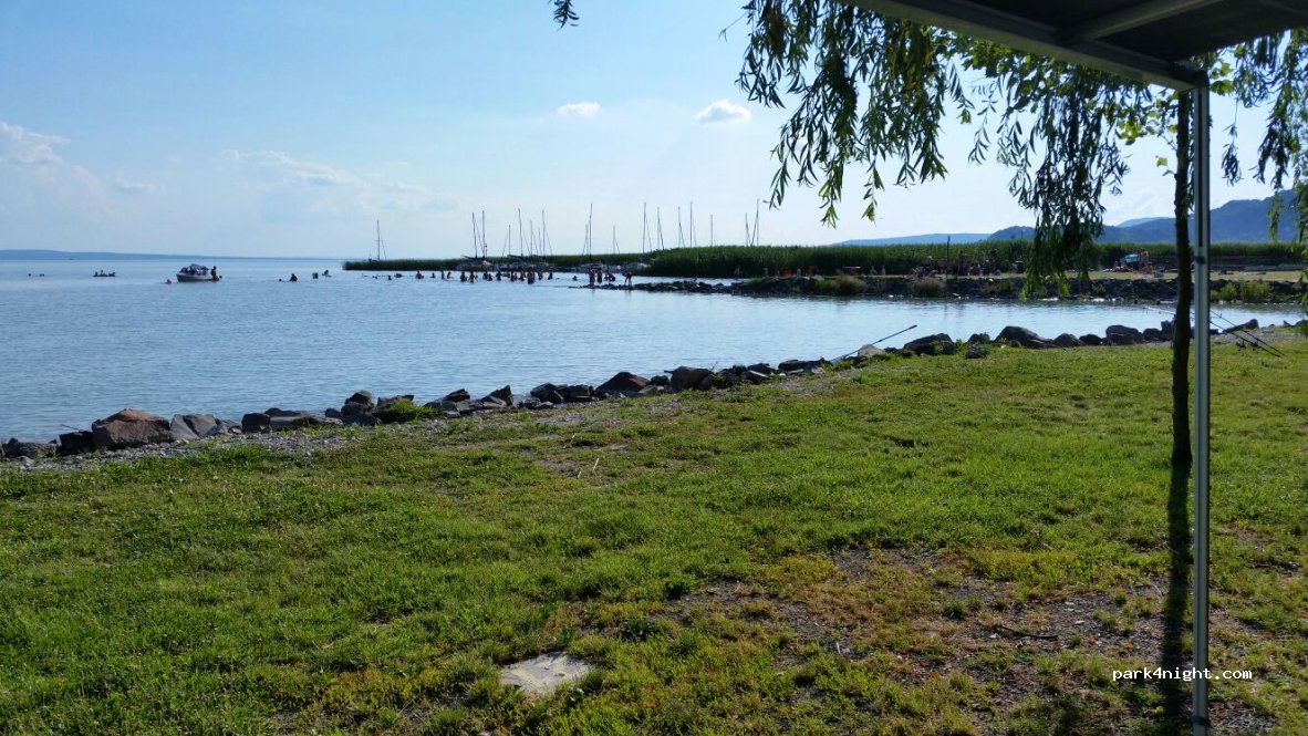 Strávili jsme zde dvě noci,pěkně místo pod stromy,čisté a velké sprchy a toalety. 100 metrů od kempu vstup na pěknou a velkou pláž u Balatonu,kde jsme strávili cely den. Vstup do Balatonu u kempu spíše pro rybáře,ne pro děti,je to přímo do hloubky a do řas.