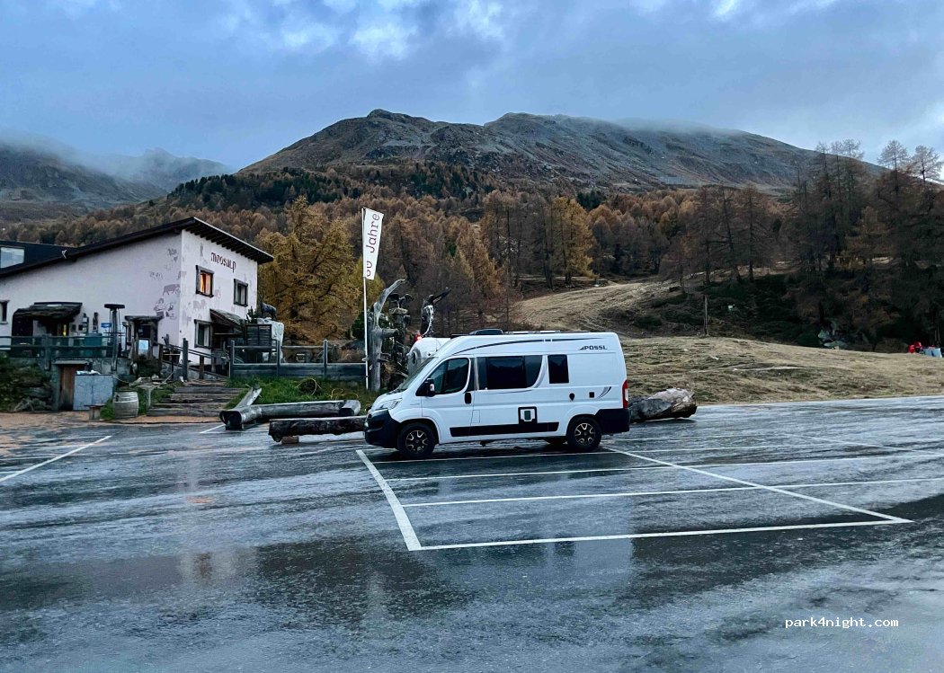 Wir übernachteten leider nicht hier sondern 5km weiter unten. Der Parkplatz dienen Gäste für 2 Gaststätten auf einem schönen Aufsichtspunkt, wo viele Wanderwege sich kreuzen. Es sind mehrere Plätze zum übernachten, man zahlt beispielsweise 10 Franken für eine Nacht über eine zentrale Parkuhr. Es gibt keinerlei Services. Parkplätze sind eben. Vorstellbar beim schönen Wetter richtig viel Betrieb.