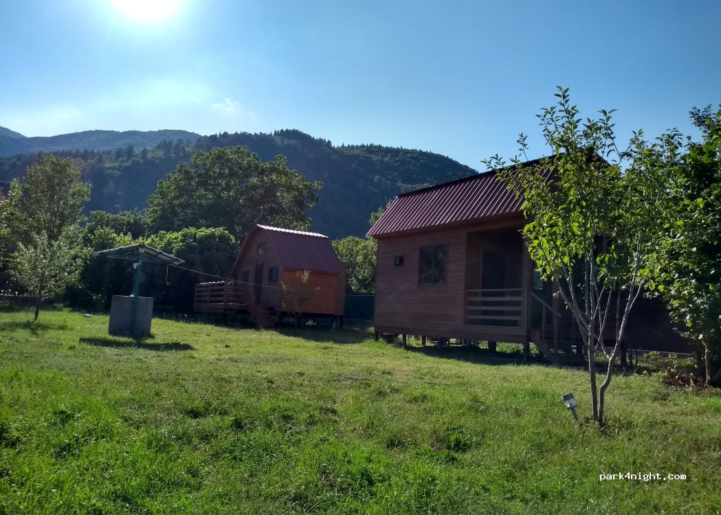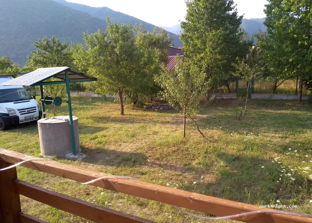 This is a small but charming campsite located off the main roads in a lovely village. Pleasant family atmosphere – open from May to October. Gravel pitches for caravans, a meadow for tents, a children's playground (currently only one swing), and a small kitchen are available. A small stove is available upon request. Restrooms and showers with hot water, a washing machine, water hookups and electricity, and grey and black water drainage with biological treatment are available. Wi-Fi is available. Contact in Georgian, German, or Russian possible; (English with Google Translate)