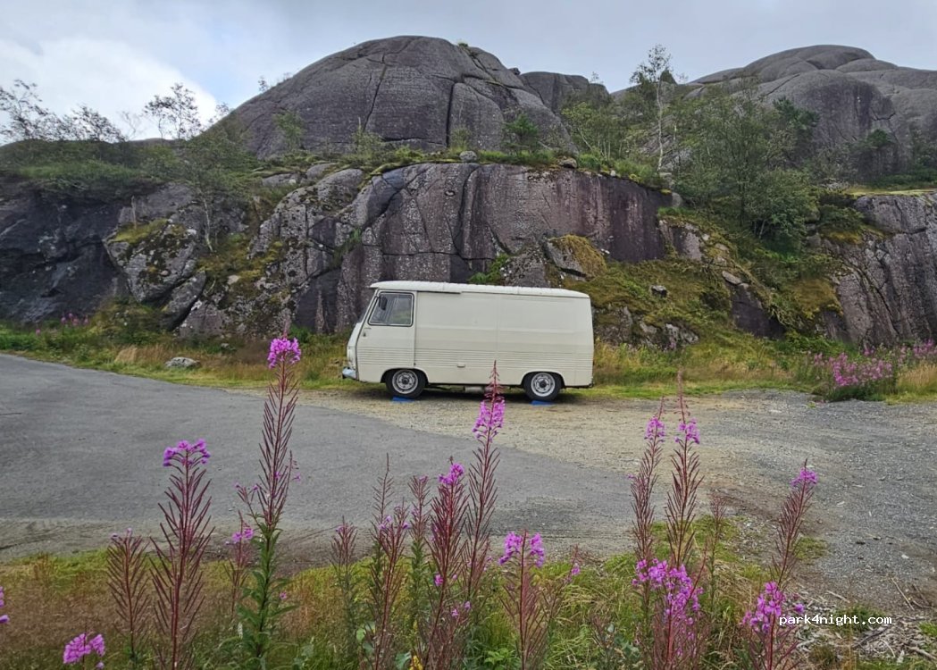 Wunderschöner Platz. 1 Wohnmobil kann eben stehen, wenn man direkt neben der Schotterzufahrt parkt. Jedes weitere Wohnmobil benötigt Keile. Man kann direkt von dort eine tolle, kurze Wanderung zum See Stora Mjelkevatnet machen. Wer länger gehen möchte, folgt dem Schild "Fandens Spillebord". Der Pfad ist schmal + teils nass (geeignete Schuhe), aber wunderschön. Man folgt hellblauen Markierungen.